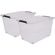 5Five opberg kist met deksel - 2x - Clip Box - 80 liter - 58 x 39 x 43 cm - kunststof - transparant -