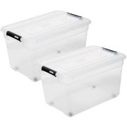 5Five opberg kist met deksel - 2x - Box - 80 liter - 67 x 47 x 36 cm - kunststof - transparant -