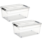 5Five opberg kist met deksel - 2x - Box - 38 liter - 67 x 48 x 17 cm - kunststof - transparant -