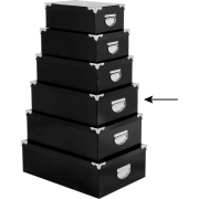 3x 5Five Opbergdoos/storage box in de kleur zwart met verstevigde metalen hoekstukken en hengsels. Afmetingen: L40 x B26.5 x H14 cm. Deze opslagboxen voor allerhande spullen, papieren, speelgoed,…