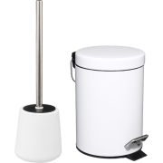Badkamer/toilet accessoires - WC-borstel en pedaalemmer - metaal - wit -