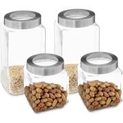 4x voedsel bewaren in een keuken voorraadpot/voorraadbus, gemaakt van helder transparant glas met luchtdichte siliconen rand deksel. Inhoud: 2000 ml. Hoog model. Geschikt om etenswaren langdurig…