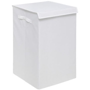 Stevige wasmand met een inhoud van 74 liter in de kleur wit. Rechthoekige draagbare wasgoedmand met handvaten aan de zijden en een klep. In de wasmand kunt u vuil wasgoed verzamelen in 2…