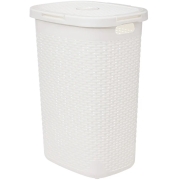 Wasmand met deksel Rotan - wit - gevlochten kunststof - 60 liter - 45 x 35 x 66 cm -