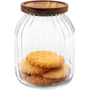 5Five voorraadpot Acacia hout - 2x - glas - 2L - 13 x 18 cm - voorraadpotten - Voedsel/snoep/koekjes -