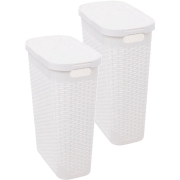 Smalle Wasmand met deksel Rotan - 2x - wit - gevlochten kunststof - 40 liter - 26 x 46 x 60 cm -