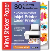 30 Translucent (Semi-Transparant) Stickervellen A4 Printer Paper - Stickerpapier Voor Printer - Incl. 2 Geschenkvellen - Inkjet&Laser Printer -