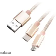 Akasa USB 2.0-kabel, 2-in-1 USB A - Micro USB B / USB C, 1,2m, * USBA, * MUSBB, * USBC