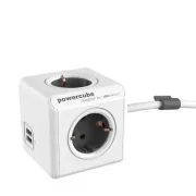 PowerCube Extended Duo USB, Type E 3-voudige stekkerdoos (Frankrijk/België) met 1.5 meter kabel<br />
