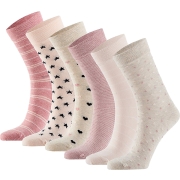 Apollo Dames sokken hartjes gestreept sterren print bio katoen 6-pack beige / roze
