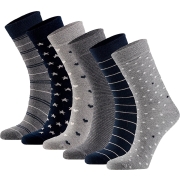 Apollo Dames sokken hartjes gestreept sterren print bio katoen 6-pack grijs / navy blauw