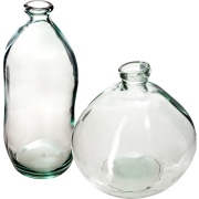 Set van 2x bloemenvazen in een organische fles vorm gemaakt van gerecycled helder transparant glas. Geschikt voor wilde-, sier of kunstbloemen en stelen, decoratie takken, of als decoratief object…