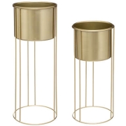 Plantenpotten 2x op metalen standaard goud - D18 x H41/D21 en H58 cm -