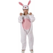 Konijn/haas dieren verkleed pak/kostuum voor kinderen budgetline. Voordelig konijnenkostuum bestaande uit een wit met roze jumpsuit (onesie) met klittenbandsluiting aan de achterzijde en een losse…