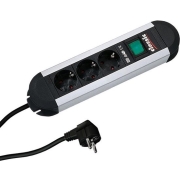 DESK Aluminium 3 xSchutzkontaktsteckdosen zwartAardingscontactdoos met 35°. Met aardingscontact haakse stekker en 2-polige, groen verlichte schakelaar. Incl.…