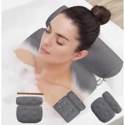 Badkussen, grijs, badkussen, badkuip, 6 zuignappen, bad whirlpoolkussen, douche-kussen, nekkussen, comfort, nekkussen, badbank, cadeau, 3D-mesh-weefsel, ondersteunende functie, hoofd, rug