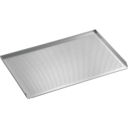 De geperforeerde plaat van aluminium in bakkerijformaat 600x400 is temperatuurbestendig tot 260°C. De 3-zijdige rand maakt veilig bakken en transporteren mogelijk.…