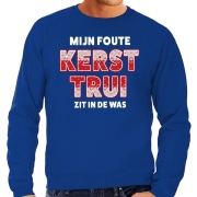 Mijn foute Kersttrui zit in de was blauw voor heren. Deze Kerst trui / sweater is bedrukt met de tekst: Mijn foute Kerst trui zit in de was. Deze kersttrui / sweater / sweatshirt is van dun…