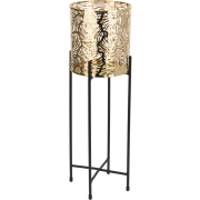 Deze luxe plantenpot van goudkleurig metaal meet 14 x 15 cm en staat op een stijlvolle zwarte metalen standaard met een totale hoogte van 45 cm. Een elegante toevoeging voor elk interieur.…