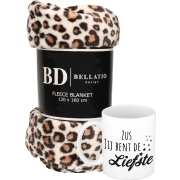 Cadeau moeder set - Fleece plaid/deken luipaard print met Liefste Mama mok -