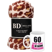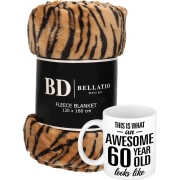 Cadeau 60 jarige vrouw set - Fleece plaid/deken tijger print 120 x 160 cm met Awesome 60 year mok 300 ml. Compleet ontspanning cadeau set voor iemand die 60 jaar wordt en graag met een kleedje en…