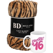 Cadeau verjaardag 16 jarige/ Sweet 16 set - Fleece plaid/deken tijger print met Sweet 16 mok -