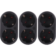 Benson Stopcontact splitter - 3x - duo - zwart - randaarde - horizontaal - verdeelstekkers