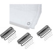 Afdekzeil / dekzeil in het wit van 6 x 10 meter, met 30x spanrubbers en S-haken van ongeveer 25 centimeter lang. Ideaal voor het bevestigen van dekzeilen. Materiaal: Rubber en metaal. Dit dekzeil…