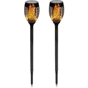 Solar tuinlamp - 2x - zwart - LED flame effect - oplaadbaar - D12 x H74 cm -