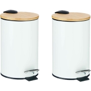 2x pedaalemmer prullenbak voor badkamer en toilet, klein model met inhoud 3 liter. Kleur: wit. Deze prullenbak is gemaakt van metaal en deksel is van duurzaam bamboe hout gemaakt. Afmeting…