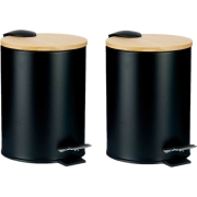 Prullenbak/pedaalemmer - 2x - zwart - 3 liter - metaal/bamboe - 17 x 23,5 cm -