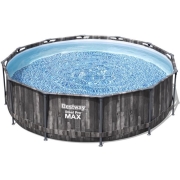SteelPro Max rond bovengronds zwembad houteffect Diameter 366 cm hoogte 100 cm Rustiek houtdecor Watervolume bij 90%: 9.150 L Patroonfilter 2.006 m3/h (58383) Type II patroon (58094)…