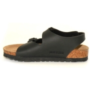 Birkenstock sandaal met goed voetbed en 3 voudige gesp sluiting. Materiaal leder voetbed en birkoflor afwerking. Kleur zwart. Pasvorm normaal tot smaller…