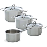 BK Marmite Kookpannenset 4delig Bodemdikte van 4.5mm Geborsteld RVS edelstaal Afgewerkt met een hoogglans rand Prettige en veilige handgrepen Schenkrand Stapelbaar Vaatwasmachinebestendig…