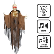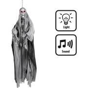 Deze griezelige hangdecoratie is bedoeld voor de echte Halloween liefhebbers. Dit enge skelet is 180 cm en heeft lichtgevende rode ogen. Perfect om te griezelen!Met deze Hangdecoratie Skeleton reaper…