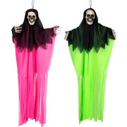 Neon gekleurde spoken set van 2x stuks. Breng meer kleur in de donkere Halloween-sfeer met dit hangende skelet in neon kleuren gewaad. Met zijn lengte van 90 cm is dit skelet een opvallende…