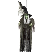 Heksen hangdecoratie pop groot van 190 cm. Deze enge hangende decoratie heks heeft een formaat van ongeveer 190 cm. Leuk om op te hangen als horror versiering tijdens Halloween. Voordelen…