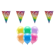 Boland Party 60e jaar verjaardag feest versieringen set bestaande uit 100x stuks gekleurde ballonnen van 26 cm en 2x stuks plastic gekleurde feest leeftijd thema vlaggetjes van 6 meter. Versier uw…