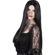 Een mooie, lange, zwarte pruik waarmee je jezelf onherkbaar kunt omtoveren tot superheks.…