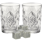 Luxe whiskyglazen set 6x stuks 390 ml met 9x whisky ijsblokstenen -