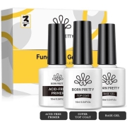 Born Pretty - 3 x 10 ml - Primer - Basecoat - Topcoat - Gellak starterspakket - Gellak set - Gelpolish - Gellak base en topcoat - Acid free primer - Primer - Primer nagels - Primer gelnagellak - Primer gellak - Gellak nagellak - Base coat