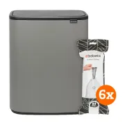 Brabantia Bo Touch Bin 60 Liter Platinum + Vuilniszakken (120 stuks)