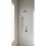 Brauer Gold Edition thermostatische inbouw doucheset - geborsteld goud PVD - hoofddouche 30cm - wandarm gebogen - staafhanddouche - met glijstang