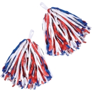 Cheerballs/Pompoms - 6x - rood/wit/blauw - polyester - Cheerleaders -