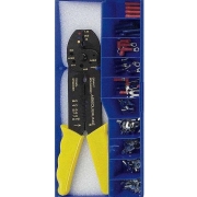 Brüder Mannesmann Kabelschoentang + ass. kabelschoenen in doos. Set bestaat uit : Kabelschoentang met afstrip- ( 0,75 tot 6,0mm) en knipfunktie. Assortiment geïsoleerde en niet-geïsoleerde…