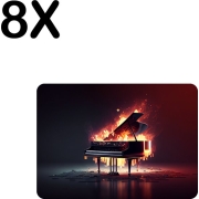 BWK Flexibele Placemat - Brandende Piano in het Donker - Set van 8 Placemats - 35x25 cm - PVC Doek - Afneembaar
