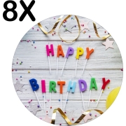 BWK Stevige Ronde Placemat - Happy Birthday met Slingers en Balonnen - Set van 8 Placemats - 50x50 cm - 1 mm dik Polystyreen - Afneembaar
