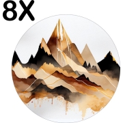 BWK Flexibele Ronde Placemat - Getekende Art - Bergen - Set van 8 Placemats - 40x40 cm - PVC Doek - Afneembaar