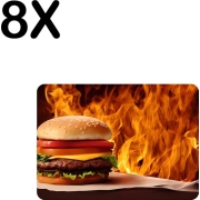 BWK Luxe Placemat - Vlammende Hamburger - Set van 8 Placemats - 35x25 cm - 2 mm dik Vinyl - Anti Slip - Afneembaar