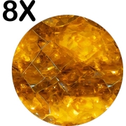 BWK Luxe Ronde Placemat - Geel - Oranje Edelstenen - Set van 8 Placemats - 40x40 cm - 2 mm dik Vinyl - Anti Slip - Afneembaar
